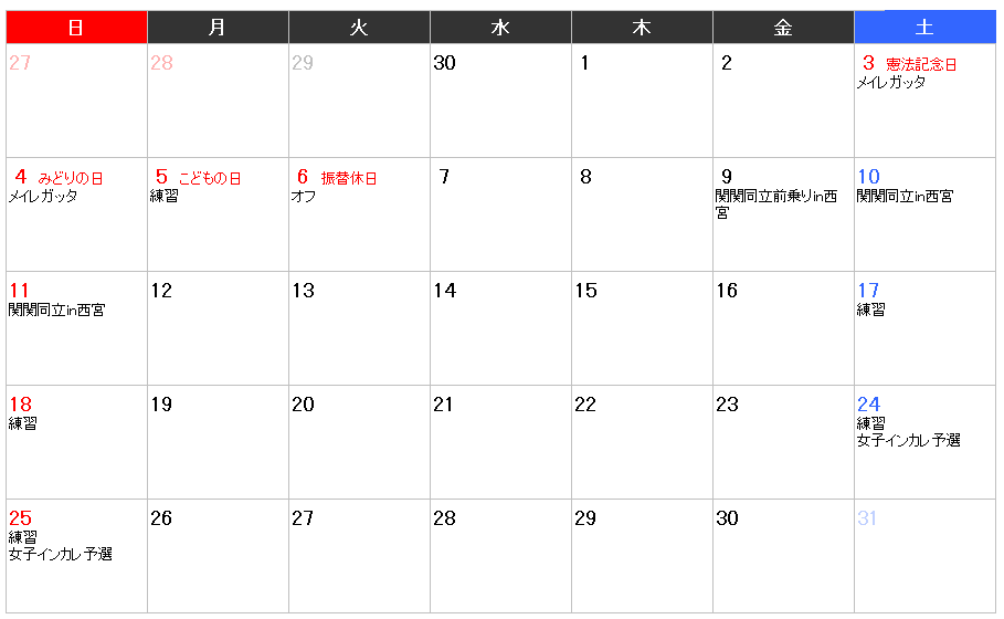 5月のスケジュールは以下の通りです。